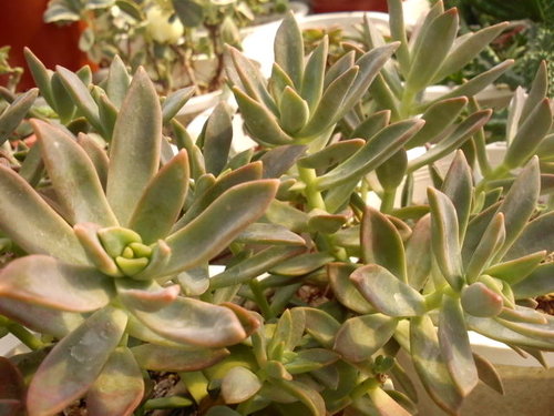 加州夕陽事實上是 " 景天屬 " 與 " 風車草屬 " 多肉植物的混種~